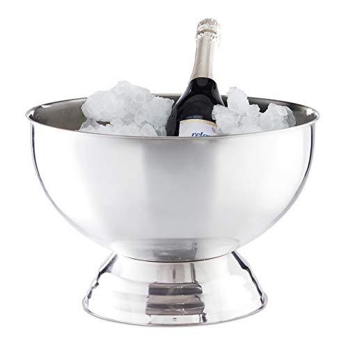 Relaxdays Champagnekylare skål, XXL iskubsbehållare för vin, champagne, rostfritt stål, dryckeskylare D: 36,5 cm, silver