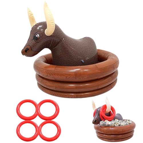 Balakaka Dryckeskylare, uppblåsbar med 4 ringar, interaktiva spel, Black Bull Lasso, ishink uppblåsbar pool, simmare kylare, uppblåsbar festkylare för utomhus, sommar, strand, pool