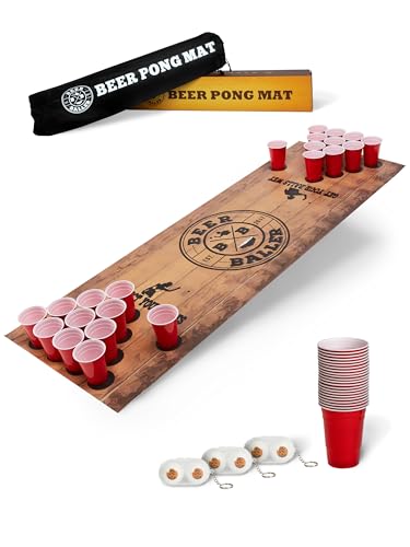 BeerBaller® ölpong matta – ölpong set inklusive ölpong matta, 50 ölpong muggar och 4 bärpongbollar | Gör varje bord till en ölpong bord! | Ölpong bord | ölpong bord | dryckesspel