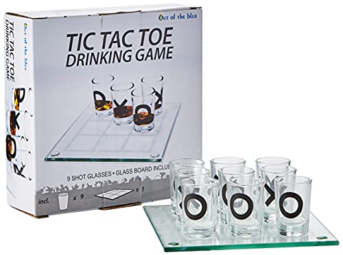 Out of the Blue 79/3967 – glas dryckesspel, Tic Tac Toe, med 9 glas, spelplan ca 13 x 13 cm