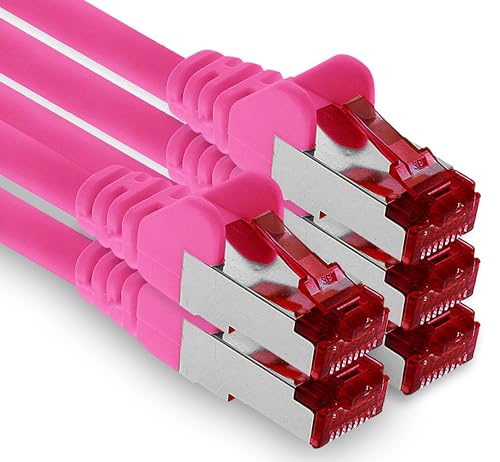 Nätverkskabel Cat 6 (3m - Magenta - 5 stycken) Ethernet-kabel Cat-kabel Lan-kabel Cat6 (SFTP PIMF) dubbelskärmad Patchkabeluppsättning 1000 Mbit/s Internet DSL-anslutning Router Dator