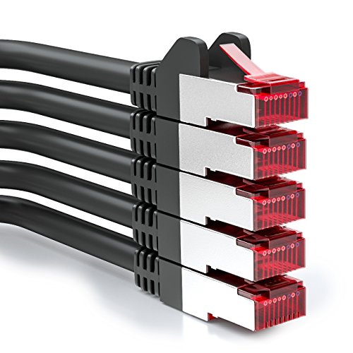 deleyCON 5x 2m CAT6 Patchkabel S/FTP PIMF Skärmning CAT-6 RJ45 Nätverkskabel Ethernet-Kabel LAN DSL Switch Router Modem Access Point Patch Fields - Svart