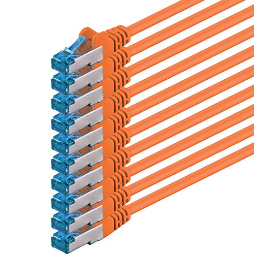 1,5 m – CAT6a – nätverkskabel orange – 10 stycken CAT 6 A patchkabel 10 000 Mbit s SFTP PIMF 500 MHz kompatibel med CAT5 CAT6 CAT7 DSL Internet-switch router