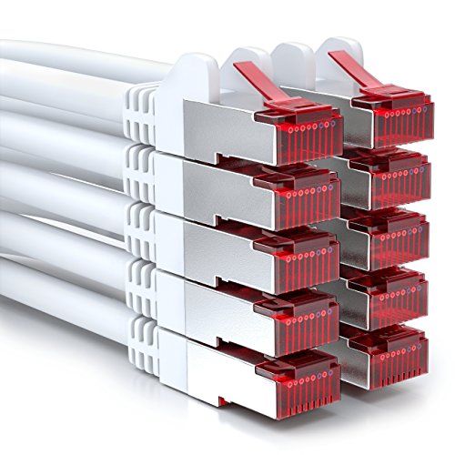 deleyCON 10x 1m CAT6 Patchkabel S/FTP PIMF Skärmning CAT-6 RJ45 Nätverkskabel Ethernet-Kabel LAN DSL Switch Router Modem Access Point Patch Fields - Vit