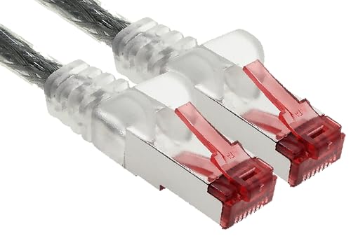 1aTTack.de - 1x 50 m patchkabel CAT6 S/FTP PIMF avskärmning CAT.6 nätverkskabel RJ45 Ethernet-kabel DSL LAN-router modembrytare patchpanel - transparent - 1 st