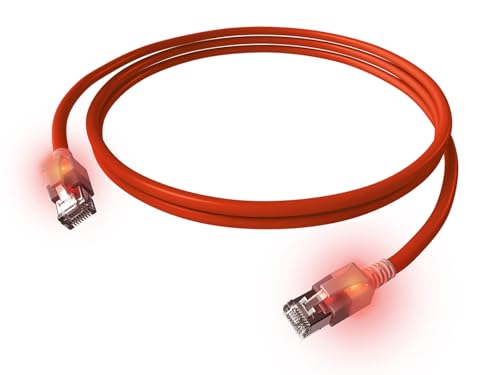 EasyLan DualBoot LED patchkabel RJ45 S/FTP Kat.6A (klass EA), med SaCon-kontakt, LSOH, röd, 7 m