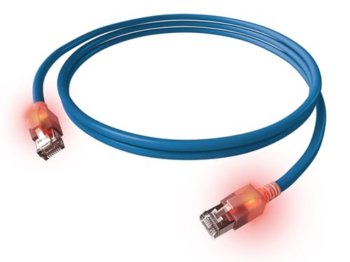 EasyLan DualBoot LED patchkabel RJ45 S/FTP Kat.6A (klass EA), med SaCon-kontakt, LSOH, blå, 0,5 m