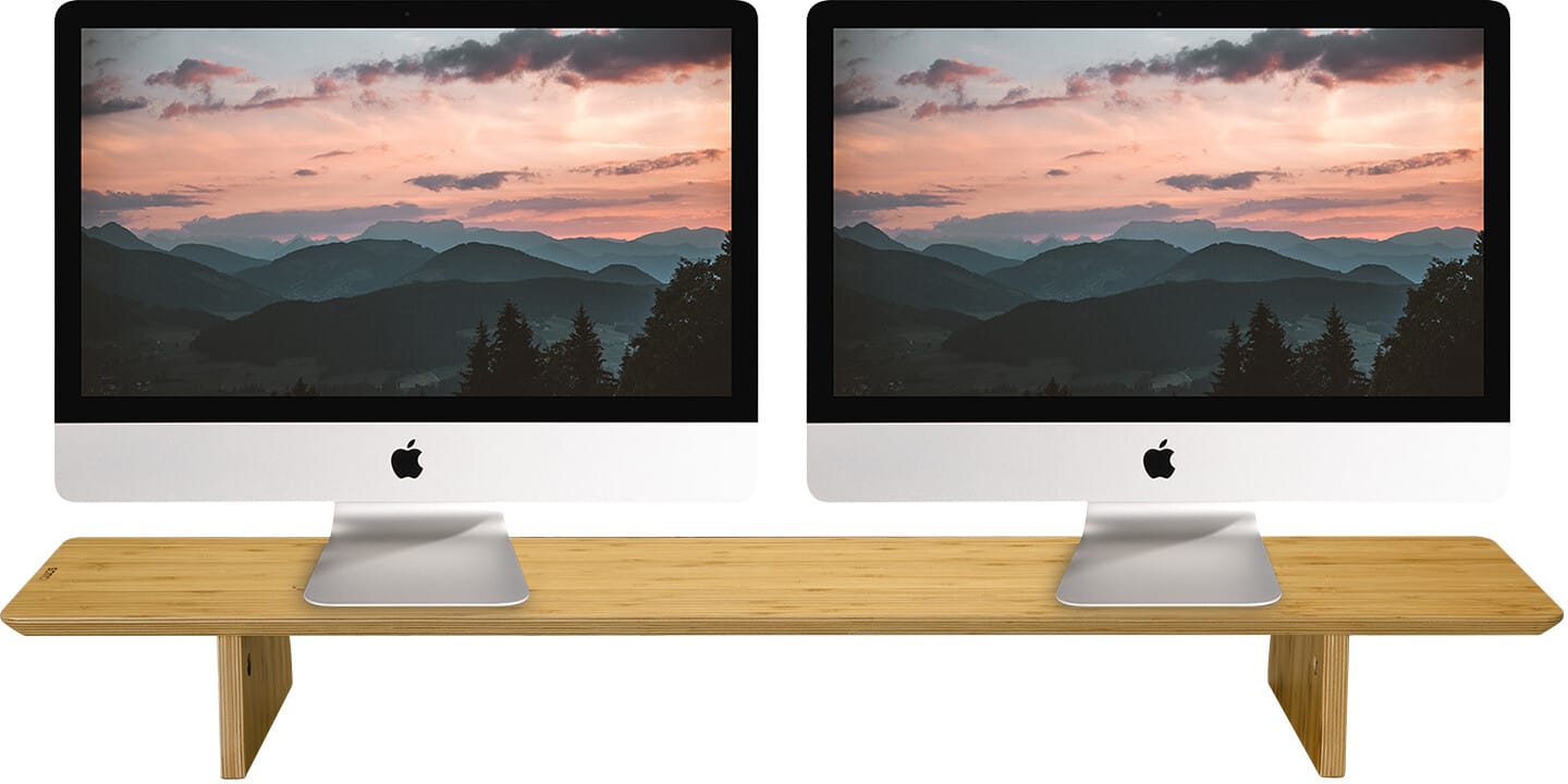 Fenge Stort monitorstativ 100 cm Dual Monitor Stand Riser med höjdjusterbart ben, multifunktionellt datorstativ för PC/laptop/TV, 100 x 23,5 x (9,2–11,2) cm (brun)