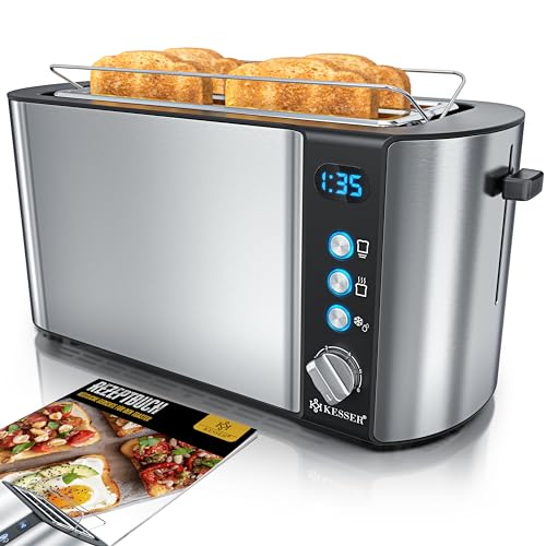 KESSER® Brödrost med bakverk, lång slits, 4 skivor med 6 brunningsnivåer + upptinings- och uppvärmningsfunktion, automatisk avstängning, hissfunktion, med bricka