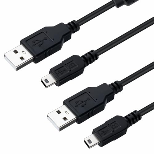 PS3 laddningskabel (3 m, 2 st) typ A-kontakt till mini-USB-laddningskabel, kompatibel med Sony PS3/PS3 Slim/Dualshock 3-kontroller, Hero 3+, digitalkamera, Dashcam, MP3-spelare