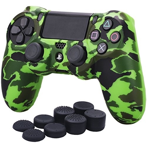 YoRHa Vattenöverföringstryck med kamouflagefodral i silikon för Sony PS4/slim/Pro Dualshock 4 Controller x 1 (grön) med Pro tumgrepp x 8