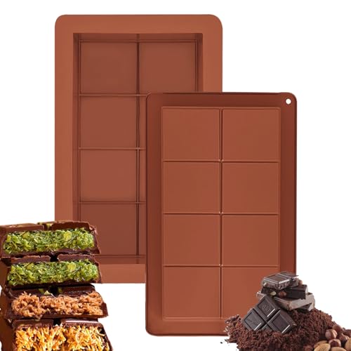 Julyupoli Dubai chokladform silikon 2 st. chokladtavla form extra djup chokladform med 10 tråg för choklad pralin godis, brun, silikon, rektangulär prism med 10 tråg
