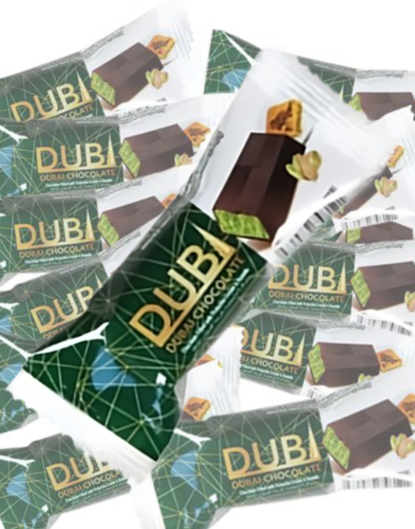 Ca. 454 st Dub Dubai Mini Choklad med Pistage och Kunafa - Hela Låda 5 kg