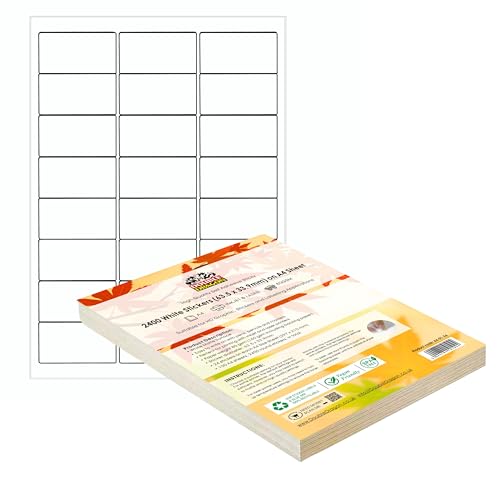 Dubbel drake, A4 självhäftande adressetiketter klistermärkes papper, 24 etiketter per ark, 100 ark, 63,5 x 33,9 mm, 2 400 etiketter. för lasertryck, bläckstråletryck, penna/penna/markör handskrift