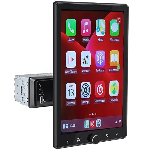 Bilradio Single Din Bilstereo Carplay Android Auto, 10,4 tums roterande pekskärm Bilradio med Bluetooth FM-radio Spegellänk Dubbel USB/AUX-ingång SWC Car Multimedia Player
