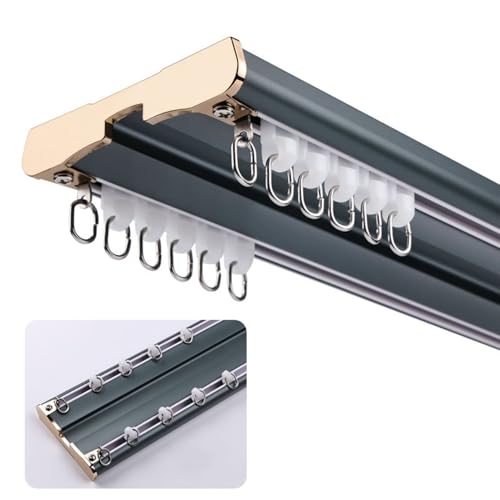 HJXGQJM Aluminium tak gardin spår förenade dubbla spår skenor takmontering gardinskenor gardinstång dubbel gardin spår gardin hängare gardin glidspår för husbil, rumsavdelare 2 m/79 tum (färg