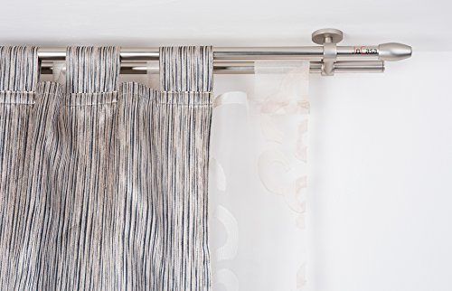 Harrms Dubbel gardinstång – utdragbar gardinstång i metall, 76–186 cm, silver, rostfritt stål, mörkläggning för mörkläggningsgardiner av voile gardiner