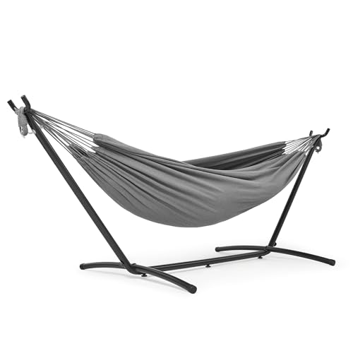 VITA5 Hängmatta utomhus – hängmatta med ram för trädgården, poolen och balkongen – generös hängmatta 2 personer – dubbel hängmatta med stativ – 200 kg lastkapacitet (mörkgrå)
