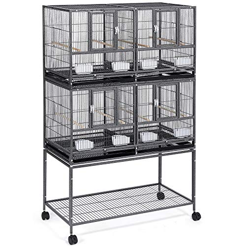 Yaheetech Stapelbar bred fågelbur dubbelbur med stativ delad inkubbur för små fåglar odlingsbur
