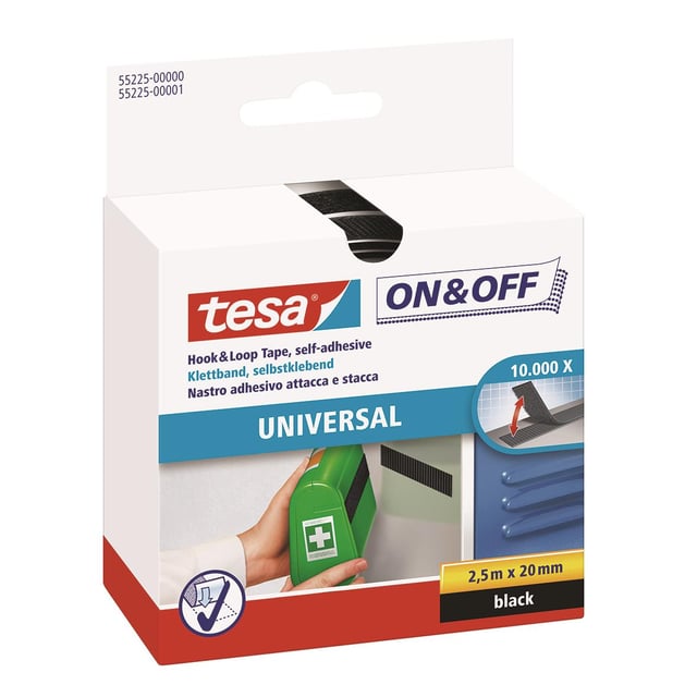 Kardborreband Tesa On & Off Dubbelhäftande Svart 20mm x 2,5m