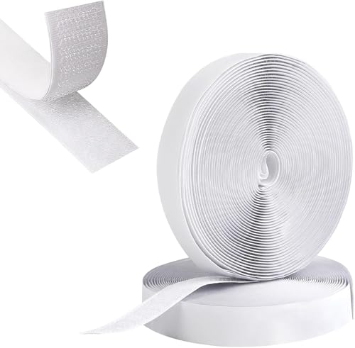 zvopvo Kardborreband självhäftande 10 m × 20 mm extra stark - Dubbelhäftande Skrapklistermärke (Vit)