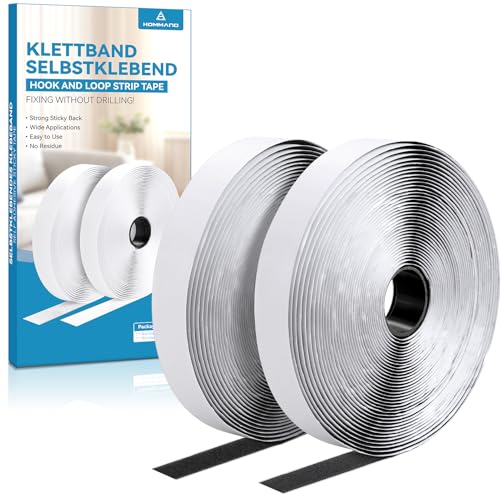 HOMMAND kardborreband, 10 m Dubbelhäftande Lim, självhäftande dubbelsidig tejp med självhäftande baksida, 20 mm självhäftande dyna för nylonväv
