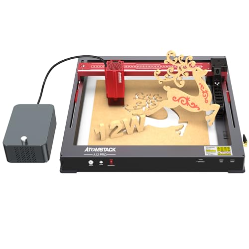 ATOMSTACK A12 Pro 12 W lasergravyrmaskin, optisk lasergravyr, maskin, prestanda, lasergravyr, unibody-ram med F60, luftstöd med luftstöd för dubbelpump