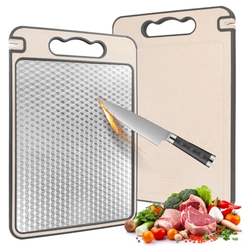 Skärbräda i rostfritt stål, dubbelsidig skärbräda i rostfritt stål med rutmönster, skärbräda i rostfritt stål med slipsten, kök skärbrädor med bärhandtag, halkfri, diskmaskinssäker