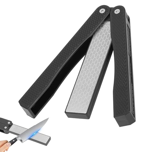 Atyhao Diamantslipsten med Två Korn, 400/600 Korn Vikbar Ficka Diamantbrynen Knivslipare Handhållen Dubbelsidig Slipsten för Utomhuscamping Köksträdgård(Ny svart)