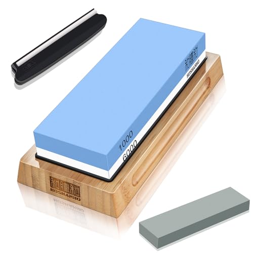HOSHANHO Slipstenskniv [utökad storlek], korn 1000/6000 slipsten brynsten professionell 2-i-1 dubbelsidig med riktning och vinkelguide, blå/vit