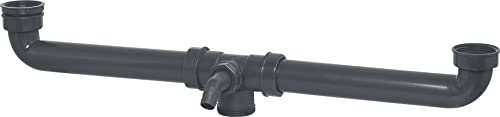 Cornat Återcyklat avloppsanslutning för dubbla diskhoar – 1 1/2 tum centrsk dränering – med enhetsanslutning – tillverkad av återvunnen plast – tillverkad i Tyskland kvalitet/T353910R, grå