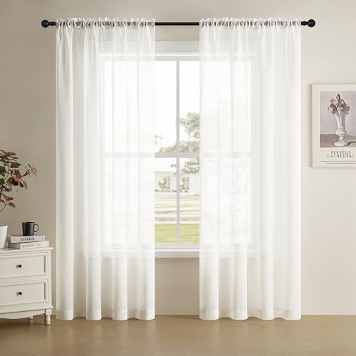 Joydeco Vita genomskinliga gardiner 183 cm längd 2 paneler set, fönstergardiner linne halvgenomskinliga för sovrum vardagsrum, fönsterbehandlingar voile draperier med dubbla stavfickor (137 x 183 cm,