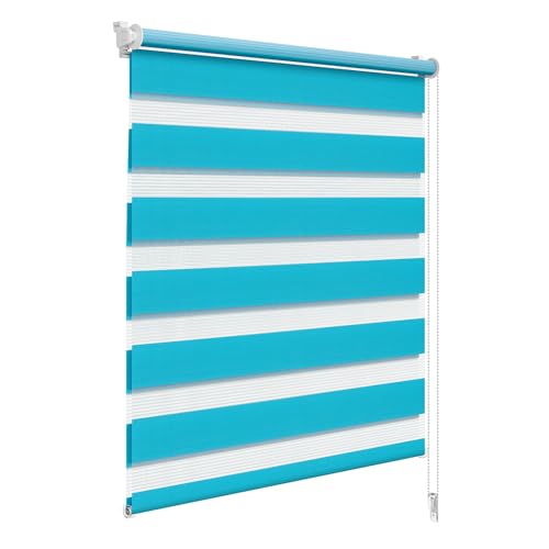 WOLTU Zebra Rullgardin för dag och natt, rullgardin med dubbla skikt, gardiner för transparens och mörkläggning, skuggardin, 90 x 150 cm, turkos, DR5521ts
