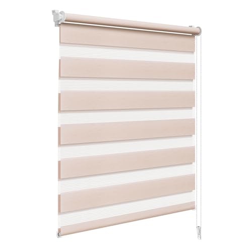 WOLTU Zebra Rullgardin för dag och natt, rullgardin med dubbla skikt och Klemmfix, gardiner för transparens och mörkläggning, ingen borrning krävs, för fönster och dörrar, 75 x 150 cm, vit
