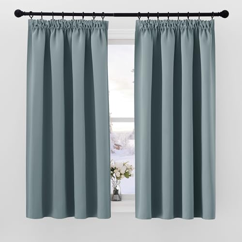 PONY DANCE Gardiner för små fönster - korta mörkläggningsgardiner, termiska, dekoration i sovrum, kök, dubbla paneler för hemmet med veckband, B 140 x H 145 cm, grå-blå