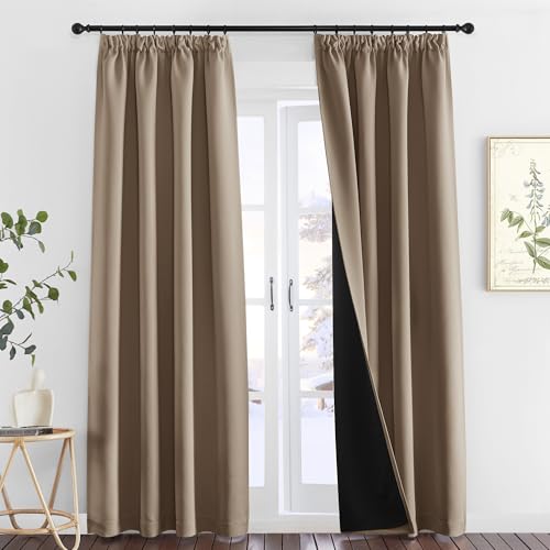 Pony Dance Gardiner med dubbla lager för skena termisk gardin köldskydd set om 2 stycken H 220 x B 140 cm cappuccino, 100 % mörkläggningsgardin veckband ljusbeständiga gardiner för sovrum