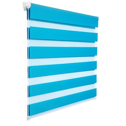 WOLTU Zebra Rullgardin för dag och natt, rullgardin med dubbla skikt, gardiner för transparens och mörkläggning, skuggardin, 100 x 150 cm, turkos, DR5522ts