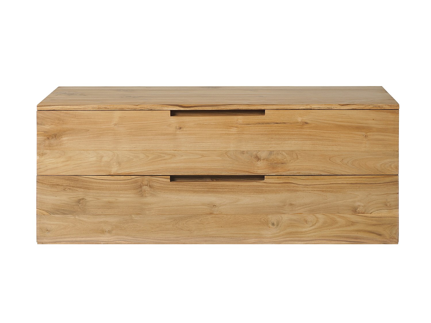 Upphängt badrumsmöbel i ljust teak med dubbla handfat - 2 lådor - 115 cm - BIMBING