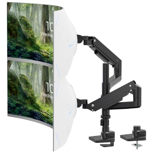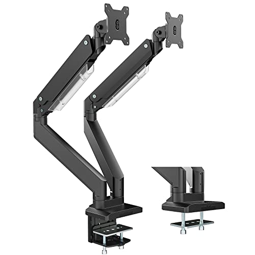 PUTORSEN Stativ 2 PC-skärm, tung premium aluminium ledad arm gasfjäder för dubbla skärmar 17-35 tum, justerbar höjd lutning svängning och skrivbordsmontering, armen stöder 15 kg per arm