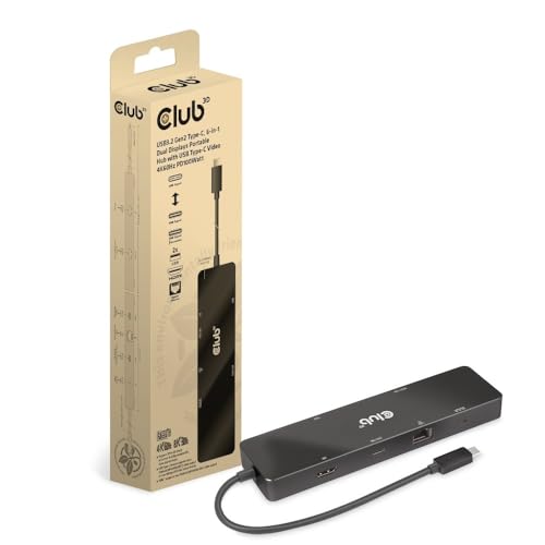 Club3D 6-i-1 dubbla skärmar USB Type-C Video 4K 60Hz bärbar docka, svart