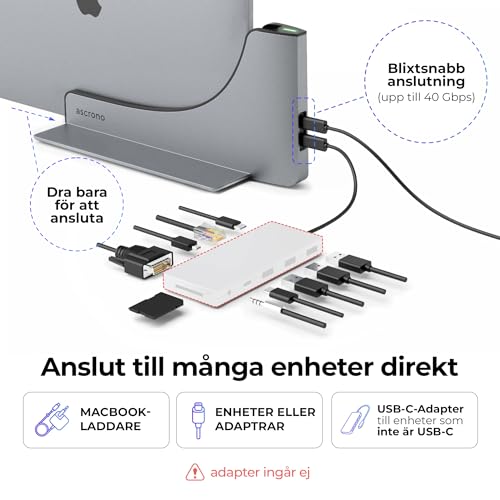 Ascrono MacBook dockningsstation perfekt för Macbook Air (2018-2020, inkl. M1) – Njut av 2 Thunderbolt-4 USB-C-portar anslut sömlöst dubbla skärmar
