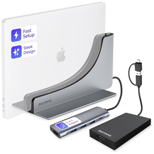 Ascrono vertikal dockningsstation perfekt för Macbook Air 13 (M2 2022) med dubbla 4K HDMI-adaptrar för M1/M2/M3 – njut av 2 Thunderbolt-4 USB-C-portar anslut sömlöst dubbla skärmar