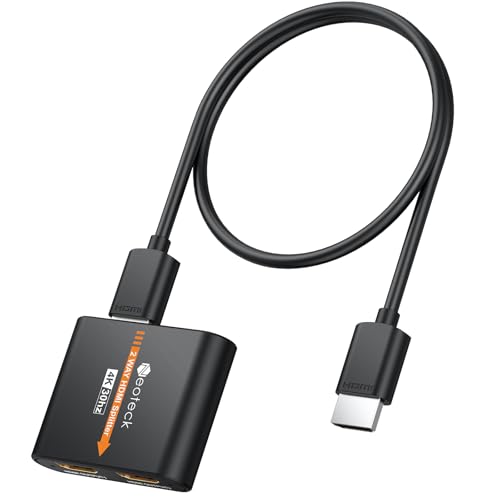 Neoteck HDMI Splitter 1 in 2 Out Support 3D och 4K x 2K (30hz) 1x2 HDMI Splitter för dubbla skärmar Duplikat/Spegel, utrustad med 0,5 M HDMI-kabel Kompatibel för familjeanvändare och spelentusiaster
