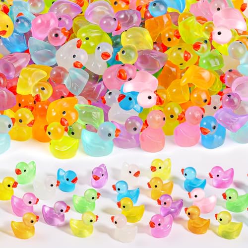 CZWZ 150 st Mini Tiny Resin Ducks Little Miniature Plastic Small Ducks Bulk Glow in The Dark Duck Figures for Dollhouse Decor Accessories Garden Micro Landscape Aquarium Potted Tiny Homes (10 färger)