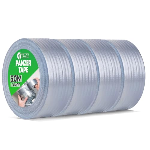 V1 TRADE pansartejp silver 48 mm x 50 m – 4 x pansarband extra starkt vattentätt för inomhus- och utomhusbruk – Duct Tape med enkel hantering och avtagbar utan att lämna några rester