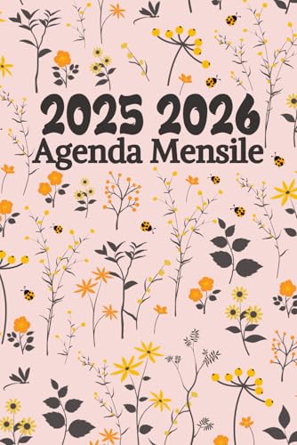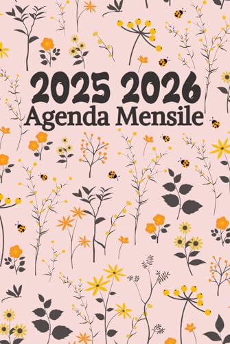 2025-2026: Agenda Mensile mese su due pagine, con ogni anno che include un calendario, date importanti e spazio per note per ogni mese, formato A5, edizione italiana.