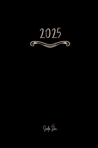 Agenda settimanale 2025: cover colore nero opaca, interno bianco e nero su carta color champagne. Settimana su due pagine, notes e date da ricordare.