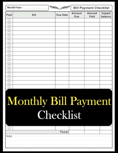 Monthly Bill Payment Checklist: Bill Payment Tracker & Expense Logbook – Stay Organized and Never Miss a Due Date