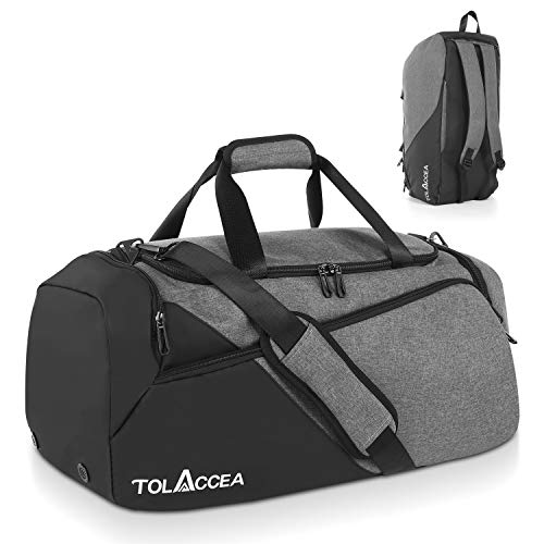 Tolaccea 47 l sportväska stor sportväska ryggsäck med skofack våtfack veckor resväska duffel väska fitness träningsväska för män kvinnor gym, resor, simning, bastu, fotboll, GRÅ, 47L, Sport/fitness