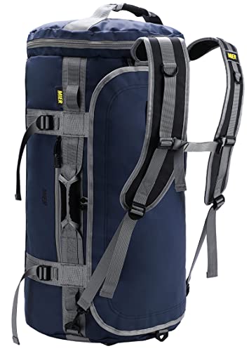 MIER Stor utomhus duffel ryggsäck sport sportväska ryggsäck med skofack cabriolet till ryggsäck, vattentät, 45 L/60 L/90 l, blå, 90L